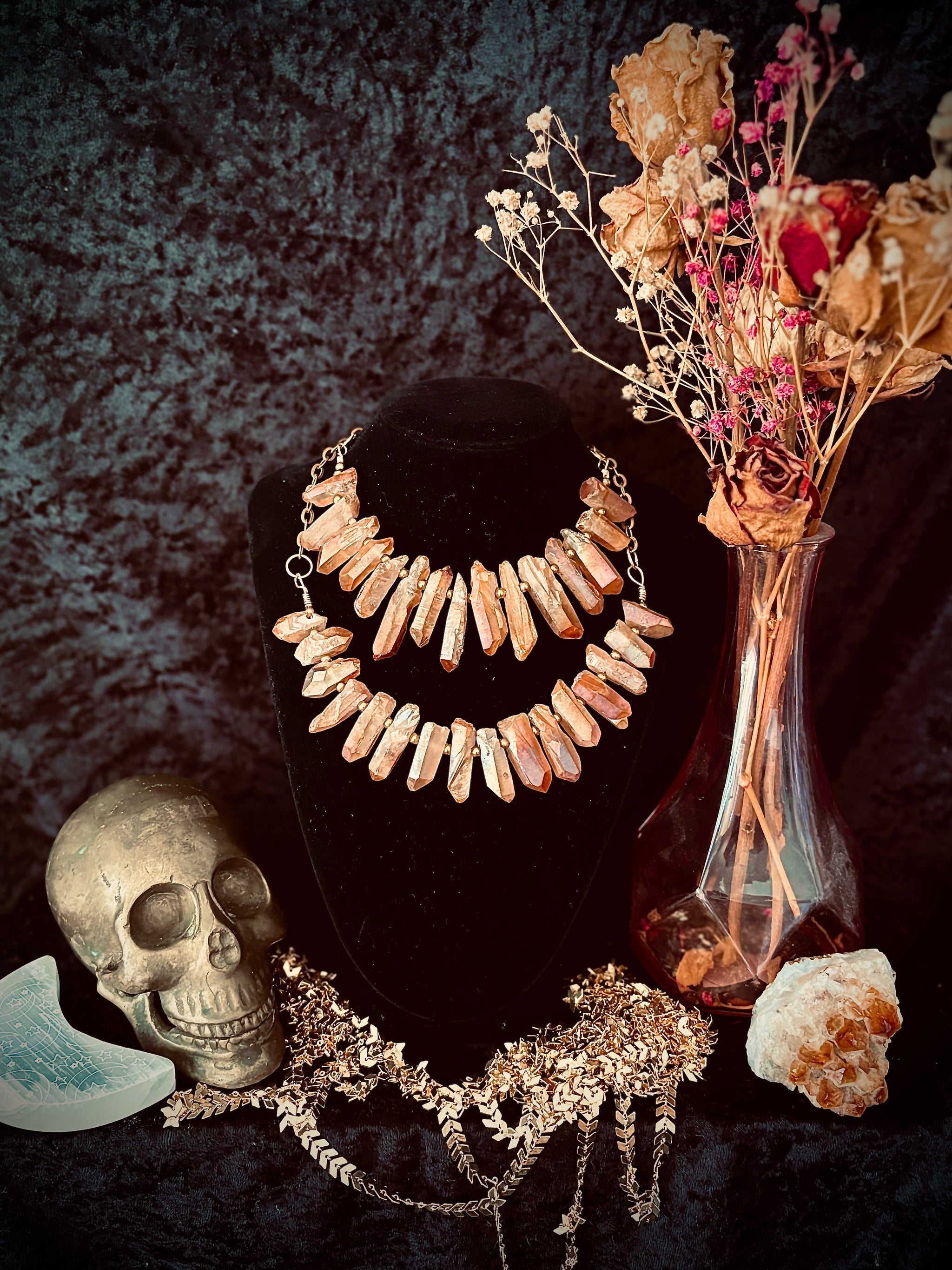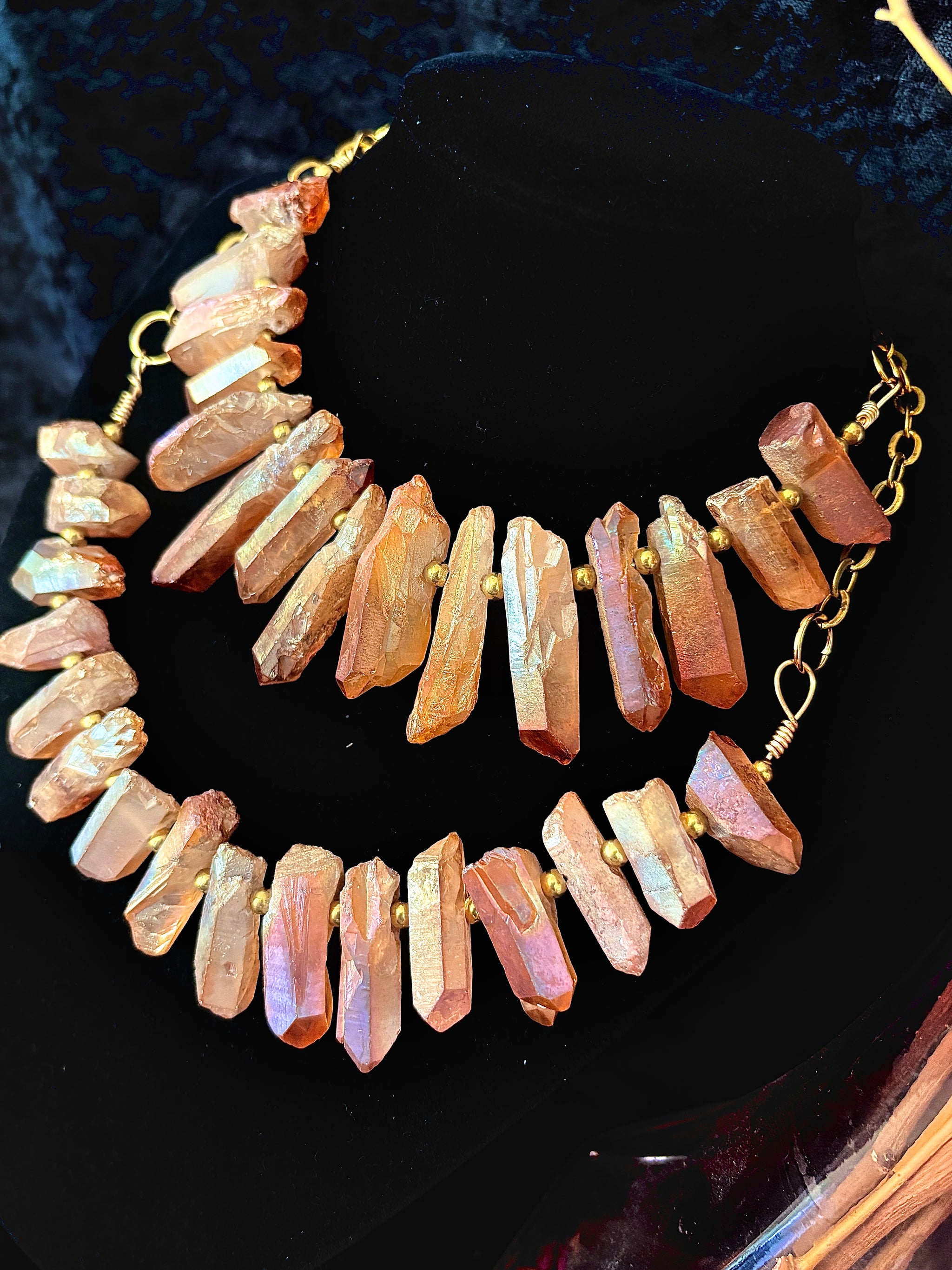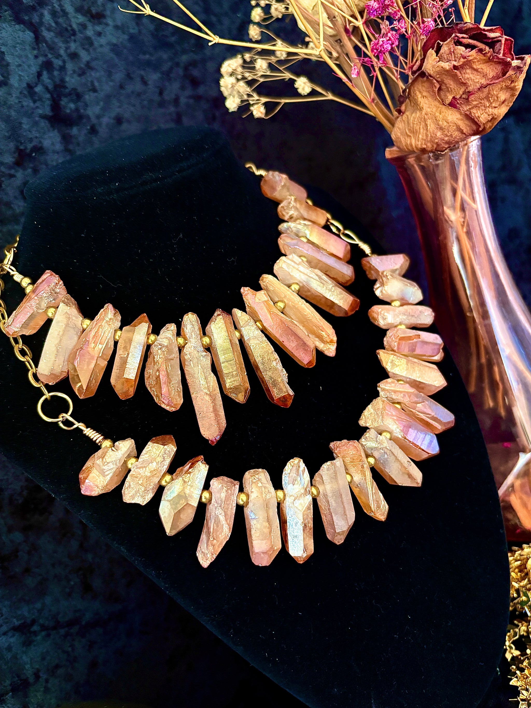 "ELIZA" Peach Aura Quartz Crystal Choker