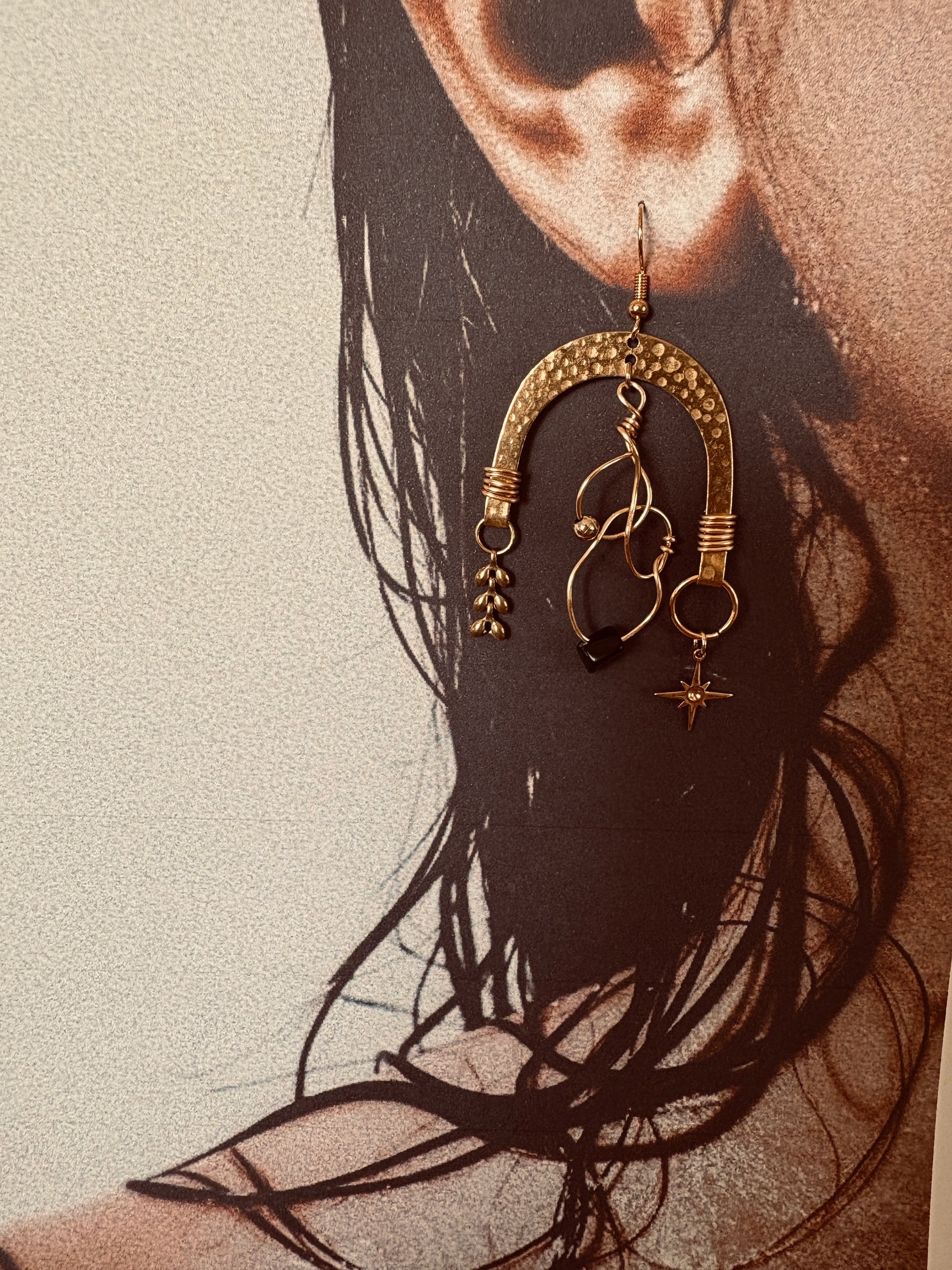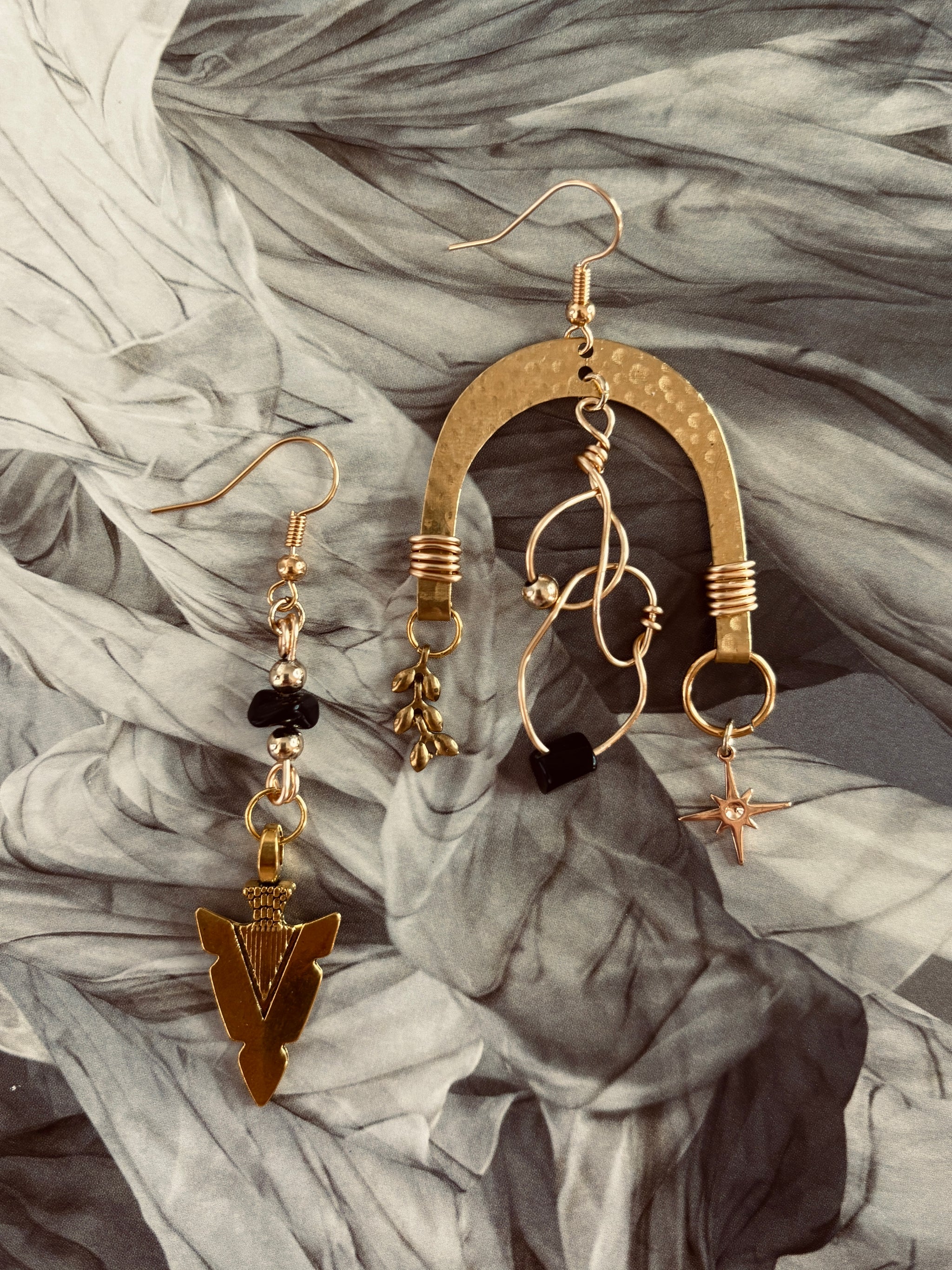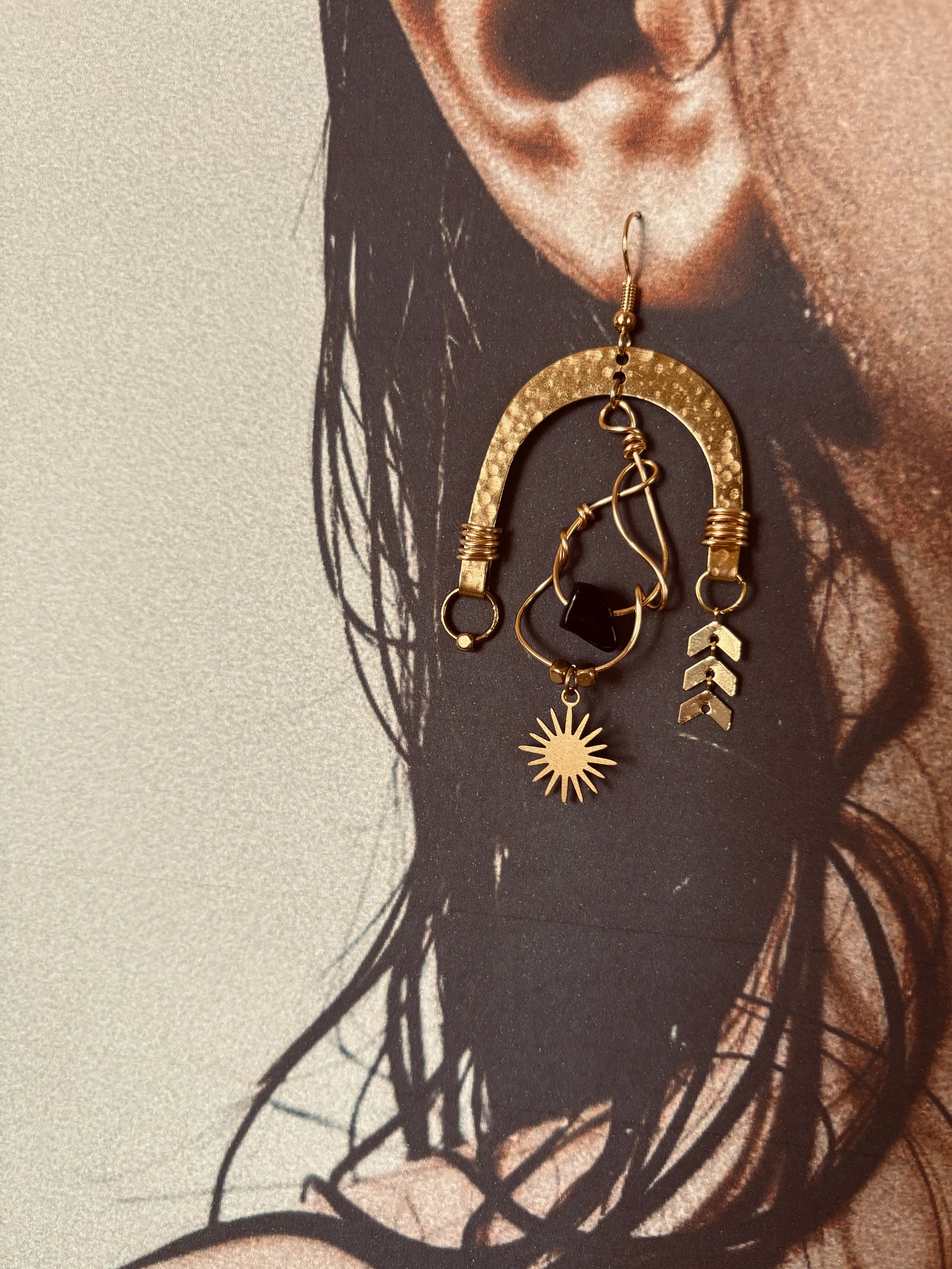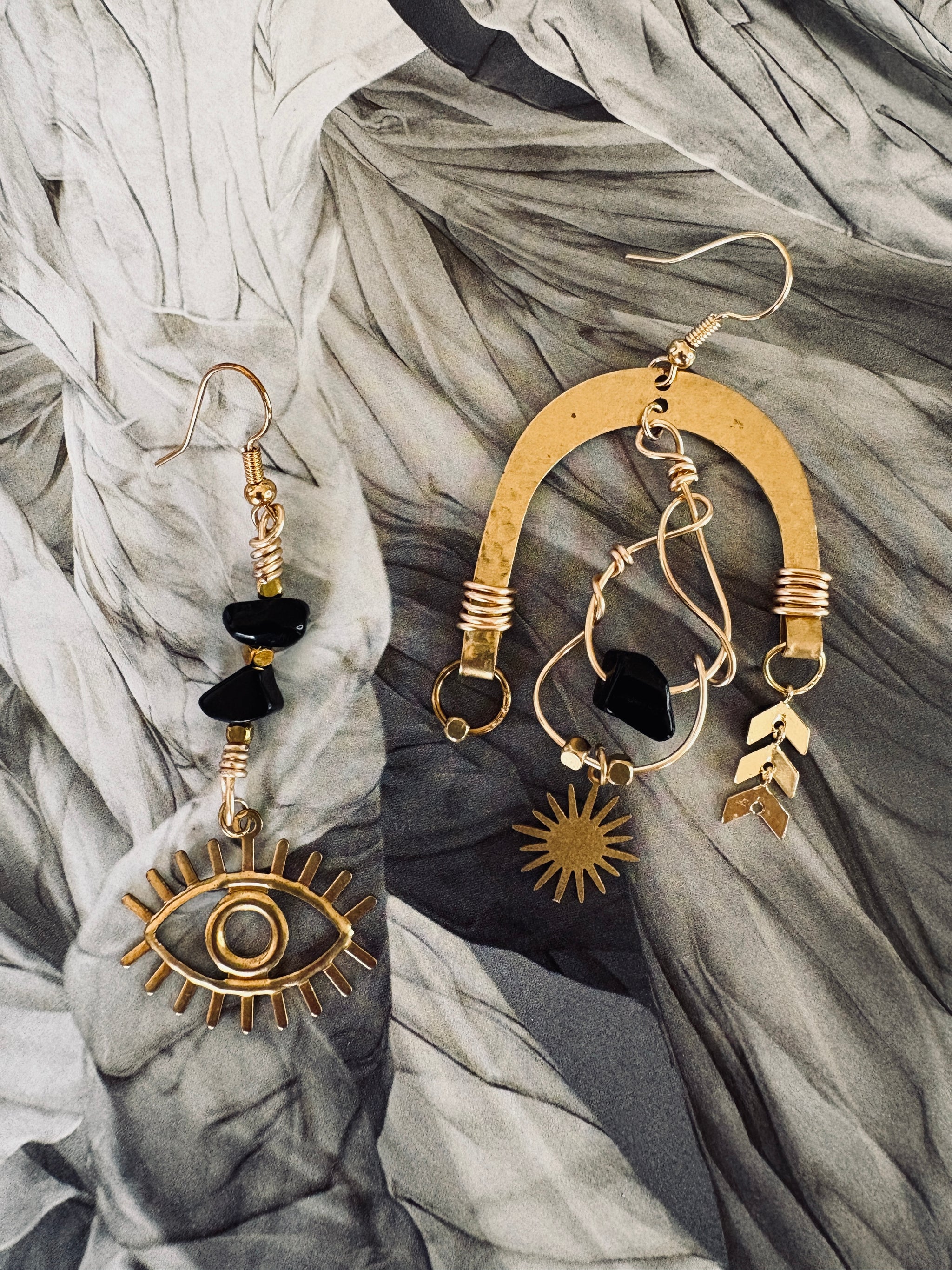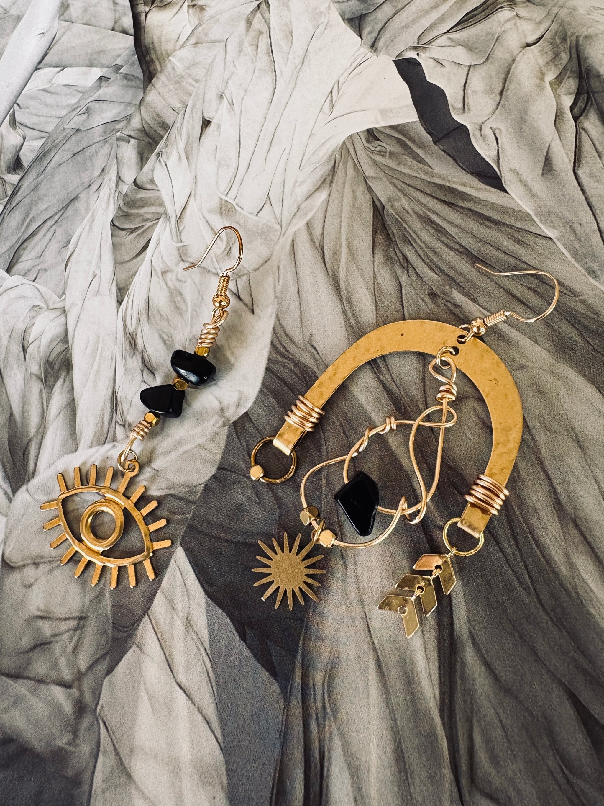 Handmade with obsidian stones and raw brass shell details, The Nyx Collection carries the energy of rebellion and fearless adventure. Each 1-of-a-kind pair is asymmetrical, a...