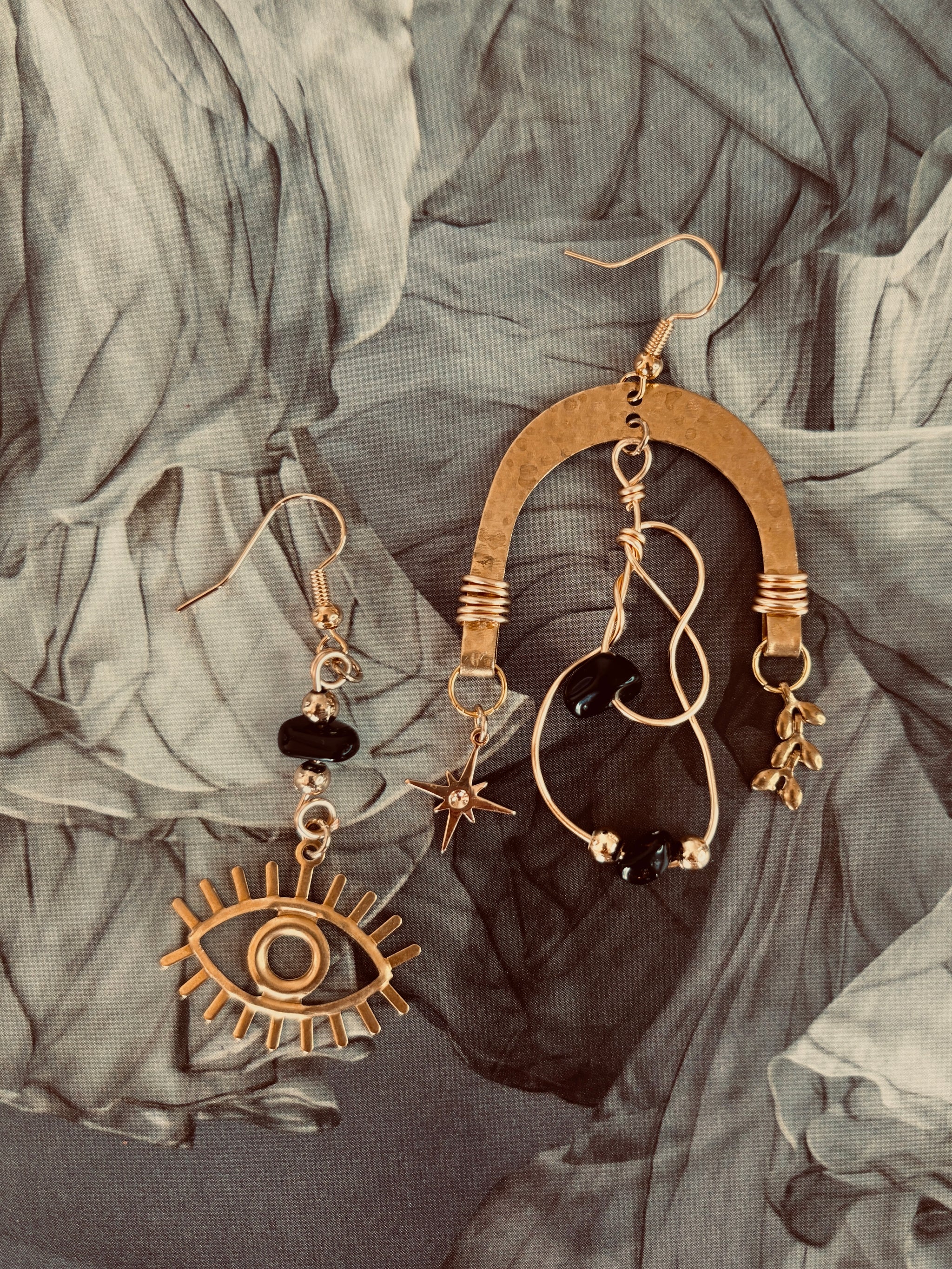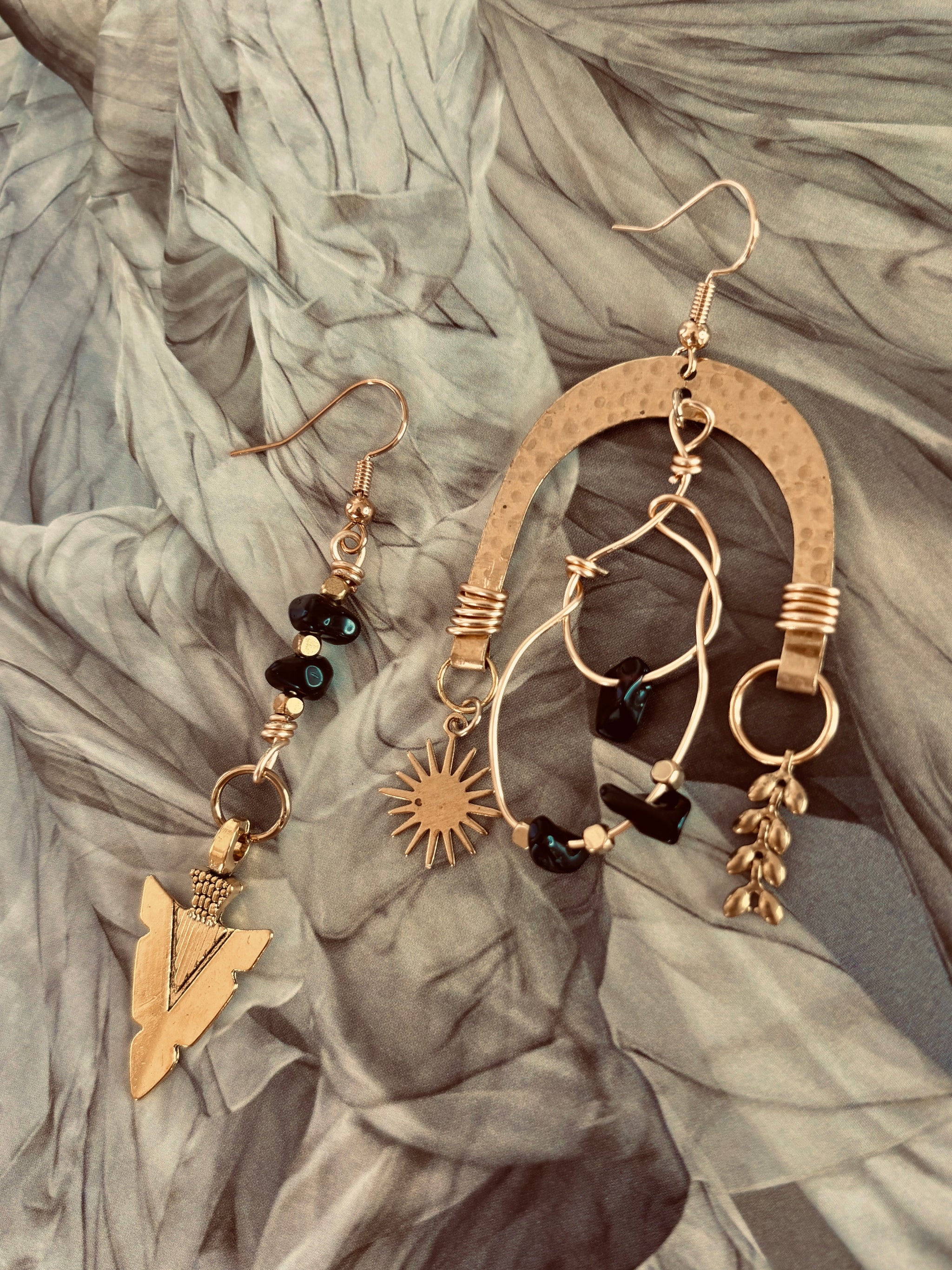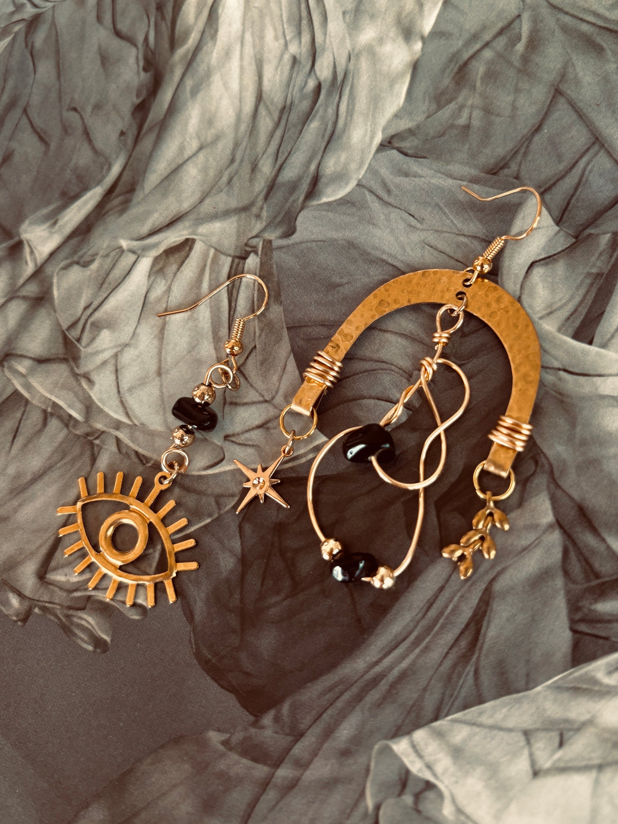 Handmade with obsidian stones and raw, elemental details, The Nyx Collection carries the energy of rebellion and fearless adventure. Each 1-of-a-kind pair is asymmetrical, a...