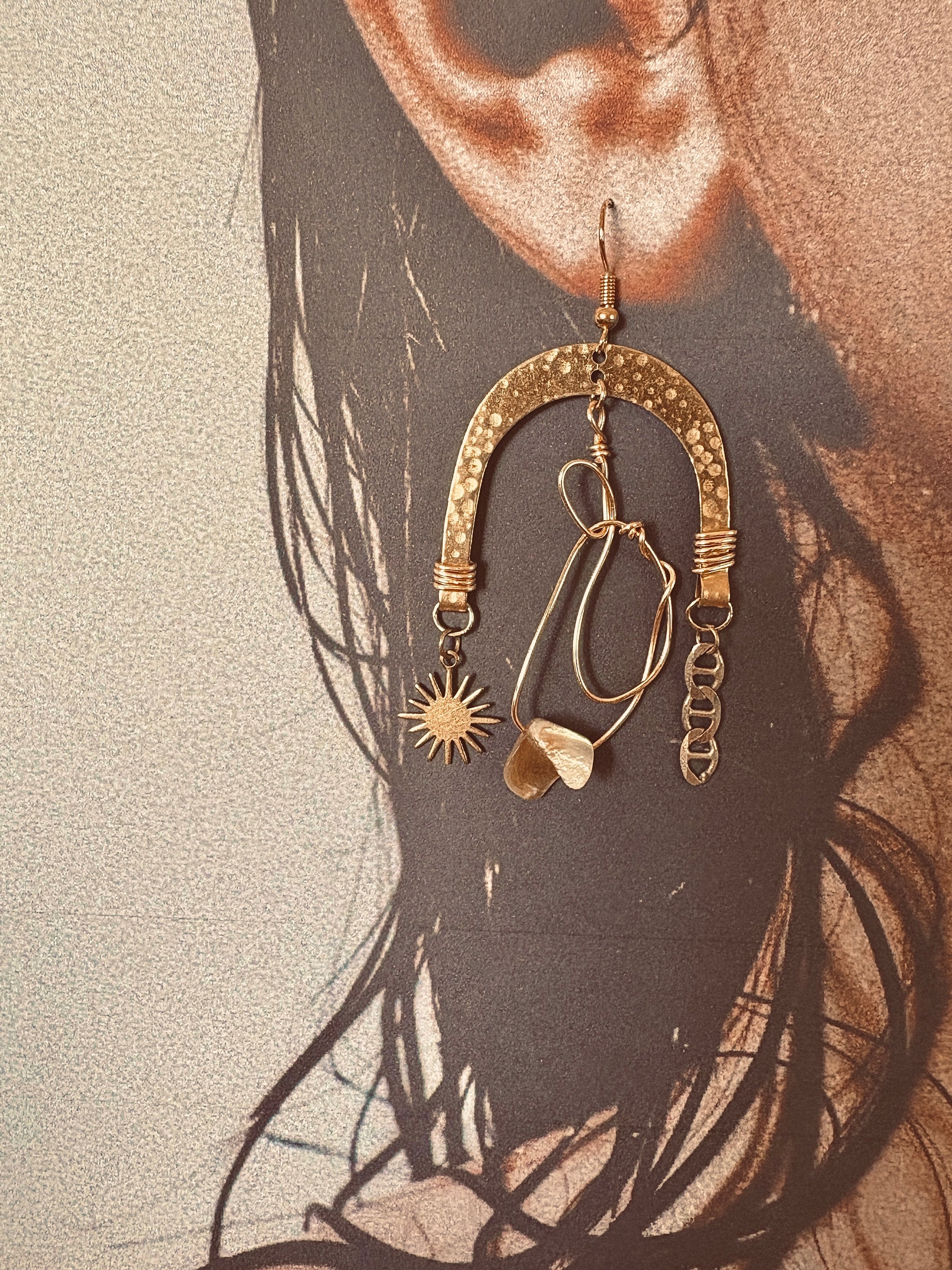 Handmade by Morgan Joanel in Australia, set into hypoallergenic brass hoop earring hooks.
