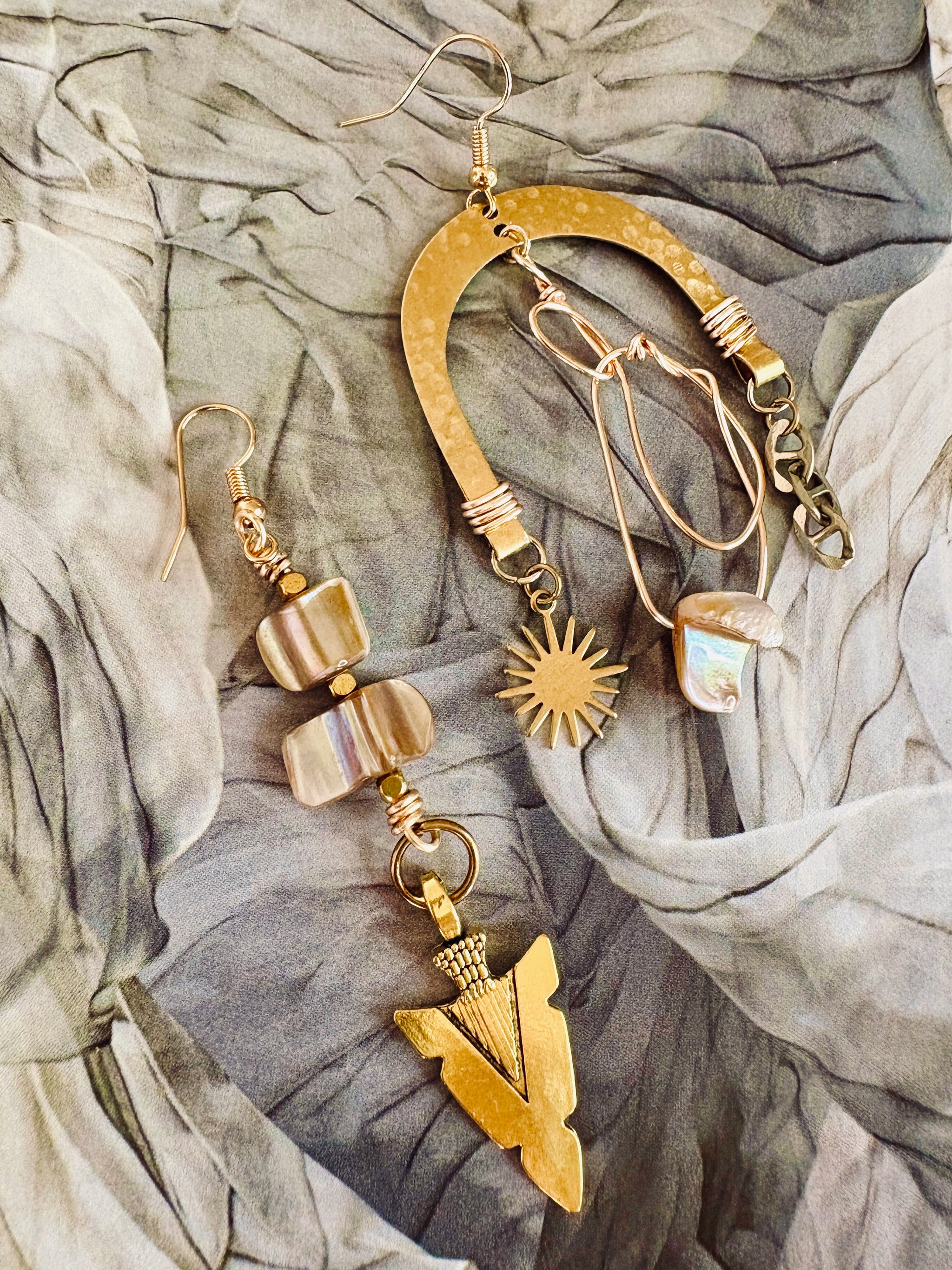 Handmade with mother of pearl and subtle golden tones, The Mya Collection embodies strength through grounding. Each 1-of-a-kind pair is asymmetrical - a symbol of balance in motion, reminding you that true leadership begins with inner calm.